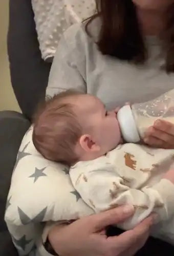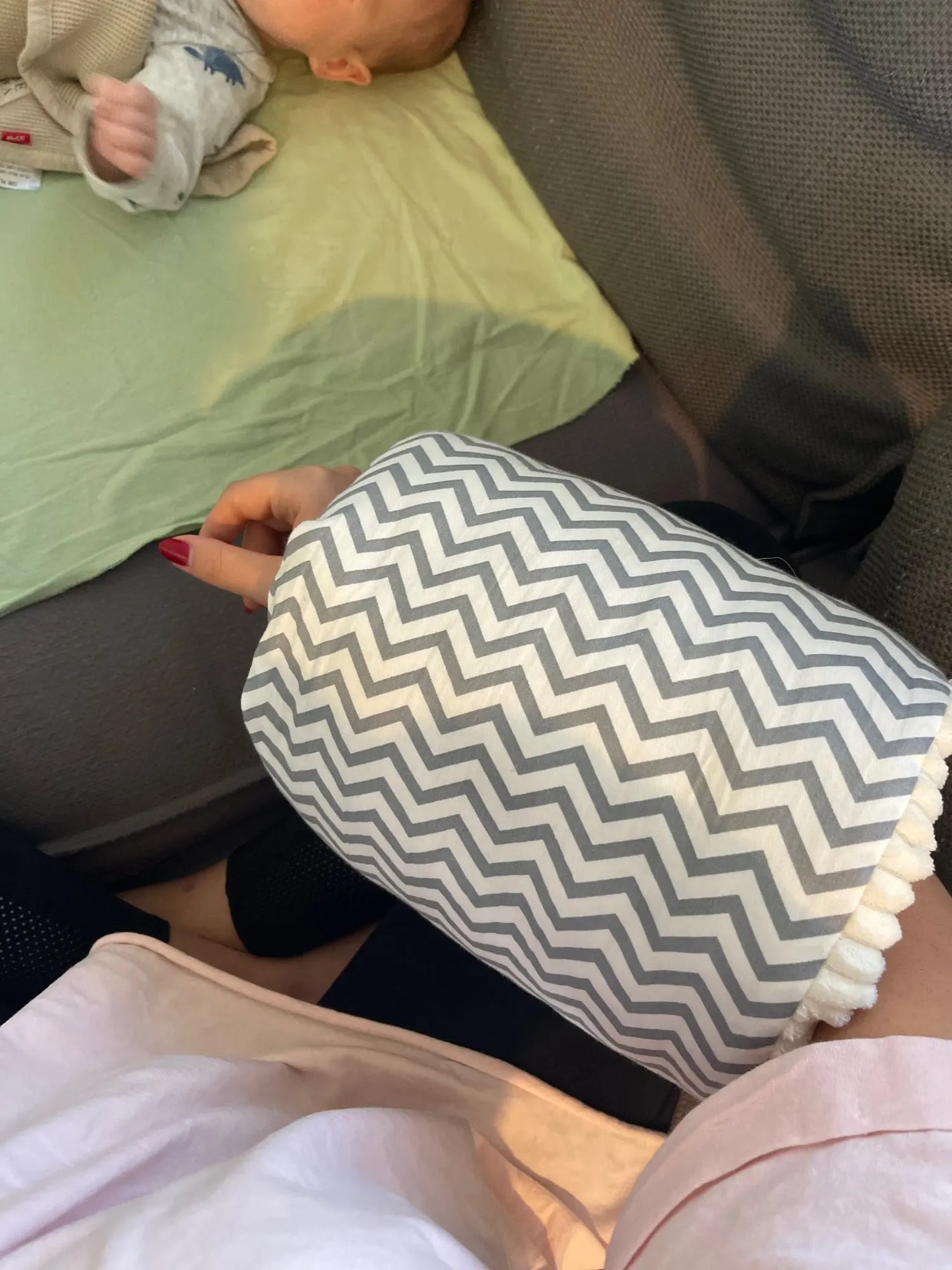 It’s designed to support your arm and elbow during bottle or breastfeeding, making feedings more comfortable, especially for longer sessions or while multitasking.